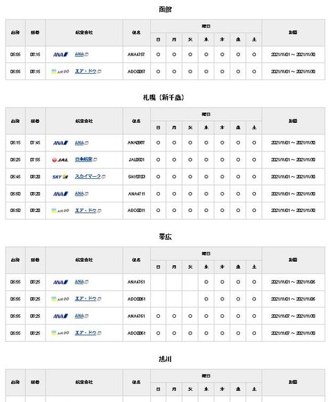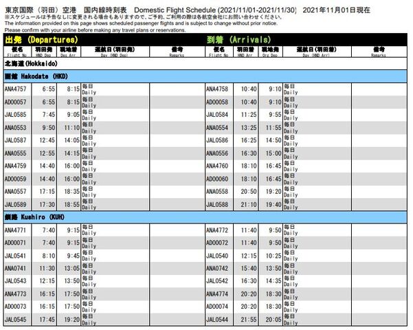 ↑2021年11月フライトスケジュールより