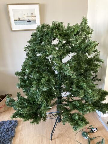(我が家の180cmスリムのクリスマスツリーは、枝の部分は自分で手で広げるタイプ。そのためツリーも軽いです。)