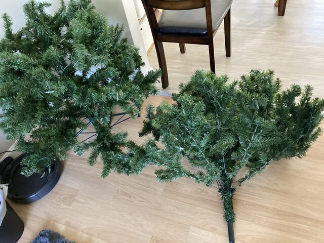 ツリーは3つのパーツ+スタンド(脚)に分かれていましたが、1つのパーツも重い!