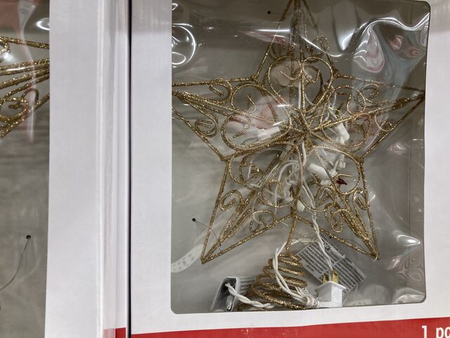 クリスマスツリートッパー(クリスマスツリーの一番上に載せるもの)。我が家は今年アメリカサイズのツリー(180cm超え)なのに、トップは日本の100均