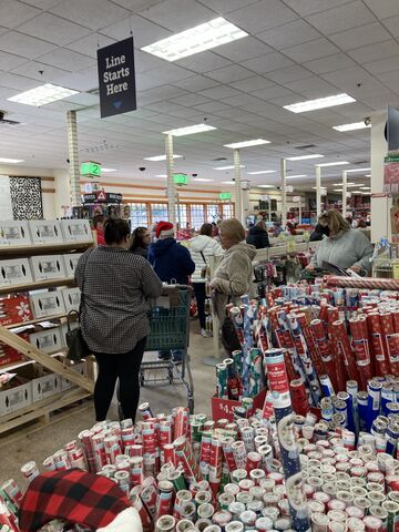 クリスマスツリーショップは雑多に商品が並んでいますが、いつもレジの列が長い!