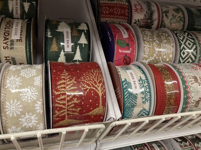 今回の私のお目当ては、クリスマス柄のリボン。