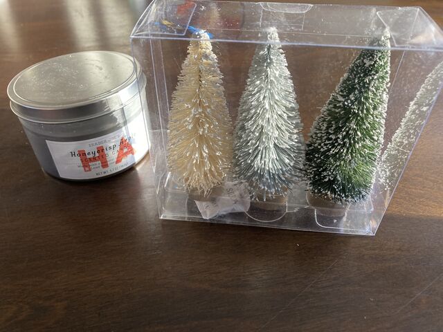 左に置いてあるのは、日本でもおなじみのトレーダー・ジョーズのキャンドル。小さめのツリーです。