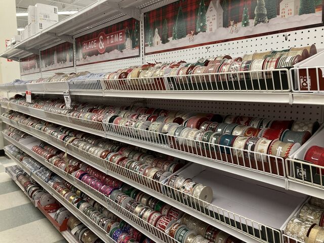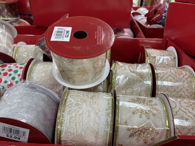 他の店舗に比べて種類は少ないですが、その分安価。クリスマス柄のリボンは1巻2.99ドル。