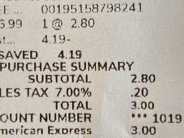 購入価格、2.8ドルに税金入れて3ドル。