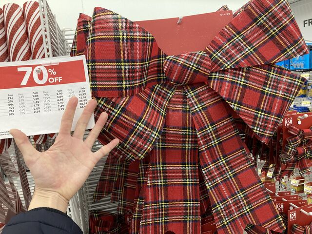 既に70%オフだったのであまり商品はありませんでしたが、アメリカあるある、売り場と全く違うところに1つだけ放置されていたリボンを発見(お客の誰かが置いていったもの)。