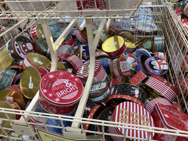 クリスマスプレゼントを入れる用の缶。ギフトカードも人気のプレゼントですが、それさえも入れるための専用の缶が売られています。