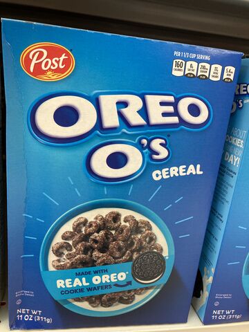 オレオのシリアル(コーンフレーク)。まー、、、食べられない味ではなさそうですが。。。