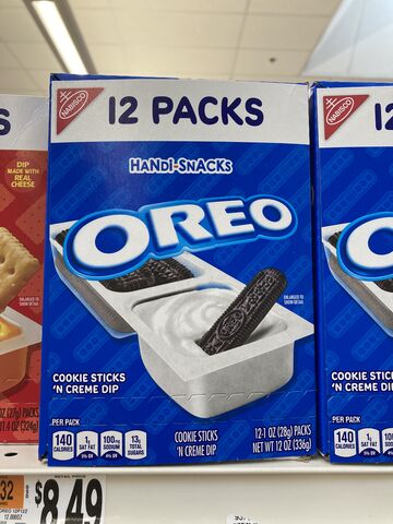 『オレオ』といえばクリームの入ったココアのクッキーですが、アメリカには日本ではみたことないようなオレオ関連商品も。クッキーとクリームが別々で、食べるときにディップするもの。12パック入なので、チョコレートOKの学校のお菓子もしくはランチ?