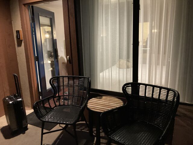 ホテルロビーからだと階段を降りる必要があり、大きいスーツケースを持っていたので苦戦。駐車場から大回りすると車も通れる坂があるのでスーツケースも持ち上げずに運べますが、すでに暗くなっていたのと寒かったので余裕なし。