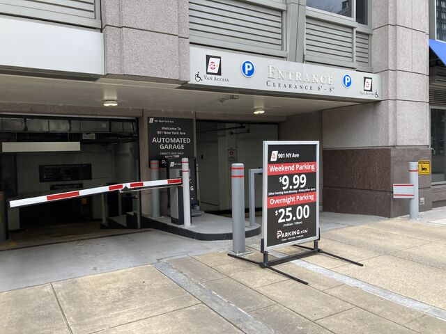 アプリから事前に予約すると、24時間で約19ドル(切り上げ。土日)。夜間は入場できませんが、その他の時間は車に荷物を置きに行ったりも可能。