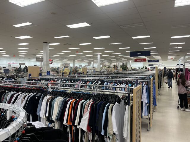 2024年4月の写真。このラックはすべてラルフローレン。日本で人気のポロシャツシリーズで、親族のお土産はこちらのポロシャツにしています。セール待ちをしたいところですが、メンズM(日本のメンズL)はなかなかセールにならず。サイズにばらつきがあるのが、ディスカウントストアの難しいところ。