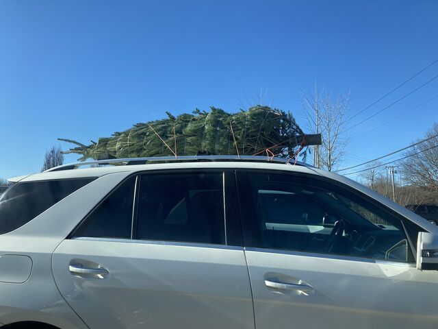 ↑これもアメリカでよく見る光景。ツリーは屋根に乗せます!