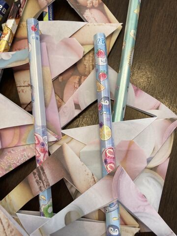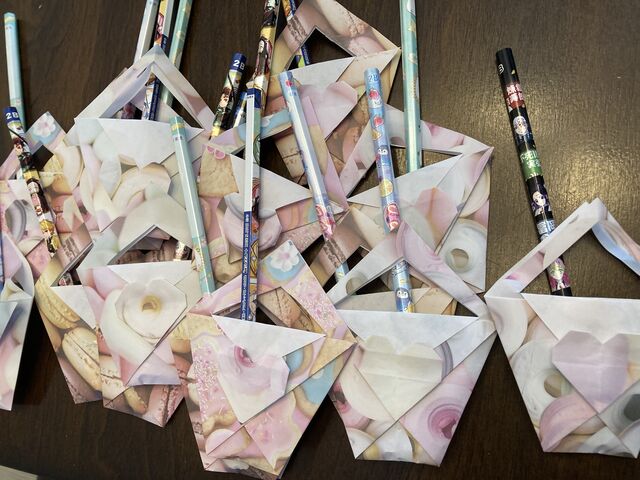 第2子小学生のクラスメートには、カバン型の折り紙に鉛筆を。