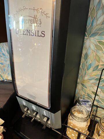 早速購入。食べるための席もあり、カトラリーも置かれています。