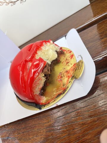 フォークで切ったので見た目は汚いですが、味は◯!日本よりは甘いかもしれませんが、甘いものが得意ではない子供達でも食べられました。