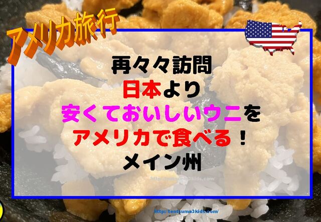 物価が高く、特にレストランは味やサービスの当たり外れにがっかりすることが多いアメリカ生活。メイン州のウニや中トロなどの海鮮の味や価格は裏切らない!のが、何度もメイン州を訪れる理由です。