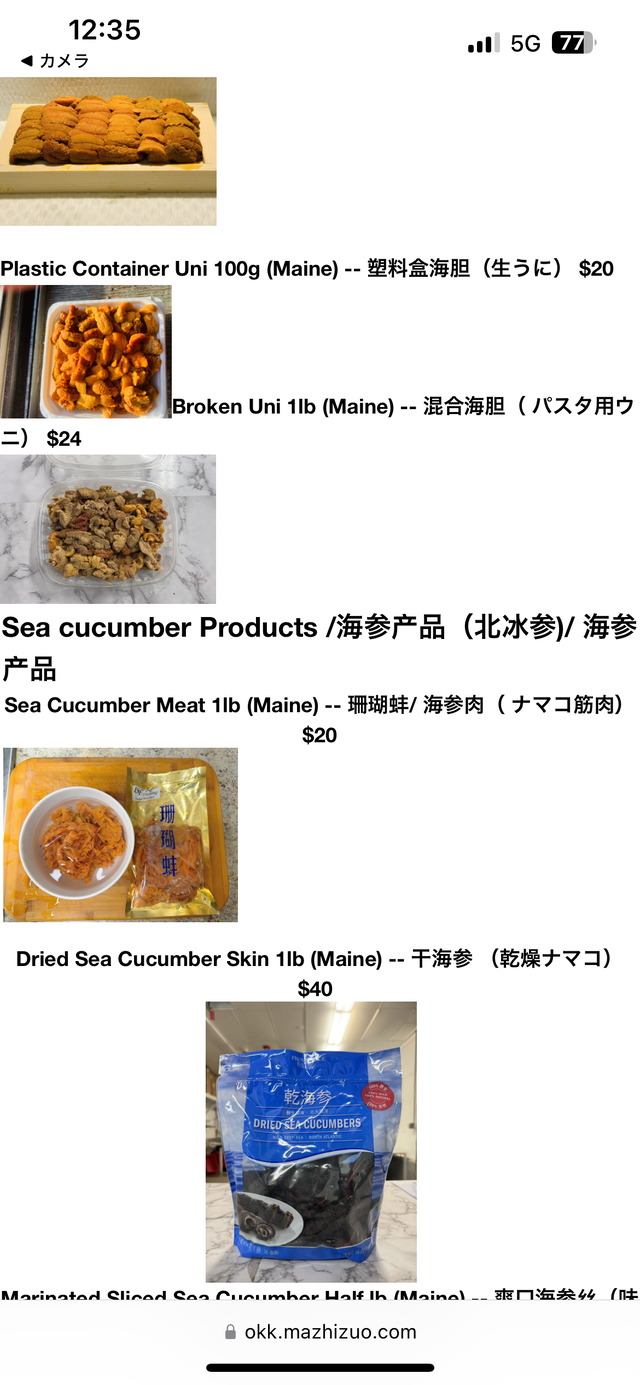 と言っていた気がします。3月だったかも?お互い英語が得意ではないので、夫は会話になっているの!?と言っていましたが、とりあえず今回は12月なのでメイン州産のウニではなさそう。