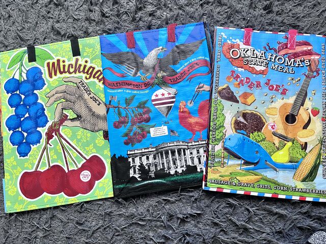 このトレジョのエコバッグ。実は州によってデザインが異なります。違うデザインを購入するために旅行のたびにせっせとトレジョを探していたのですが、そろそろ本帰国を怪しんでいたのでミステリーバッグを購入。