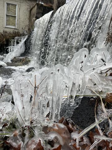 先週撮影した、近所の池から流れ落ちる水。落ちたしぶきがそのまま凍るという経験は、日本だとあまり気にしたことがありませんでした。