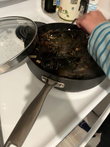 今月食べたロブスター。高いので、生きているものを購入して家で調理します。オフシーズンなので小さめ。単価は1パウンド(454g)12ドルほどです。