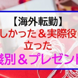 海外転勤の際にもらって嬉しかった餞別やプレゼント。国内外転勤族でもらうことが多く、実際もらって嬉しかったプレゼントやもらえると嬉しいプレゼント、プレゼントをもらって困ったエピソードの体験談です。 ...